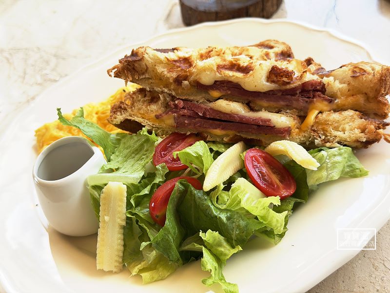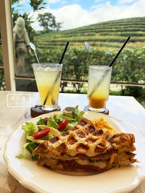 ▼這天吃完午餐才過來,點了飲料、三明治輕食、瓦芙,風味還算不錯,放下3C好好欣賞坪林的好風光