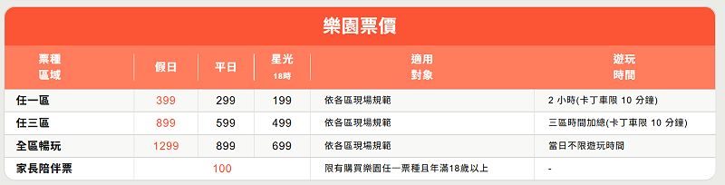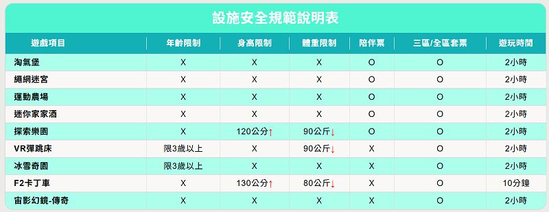 ▼各項設施的安全規範、年齡身高體重限制、陪伴票規定等