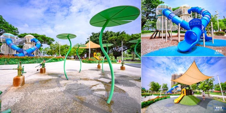 高雄鳳山特色公園【五甲公園】高雄玩水公園, 水珠造型遊戲塔溜滑梯, 捷運輕軌都能到 (交通資訊、推薦住宿)