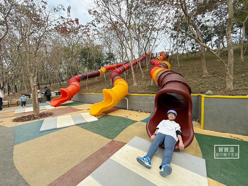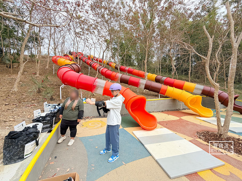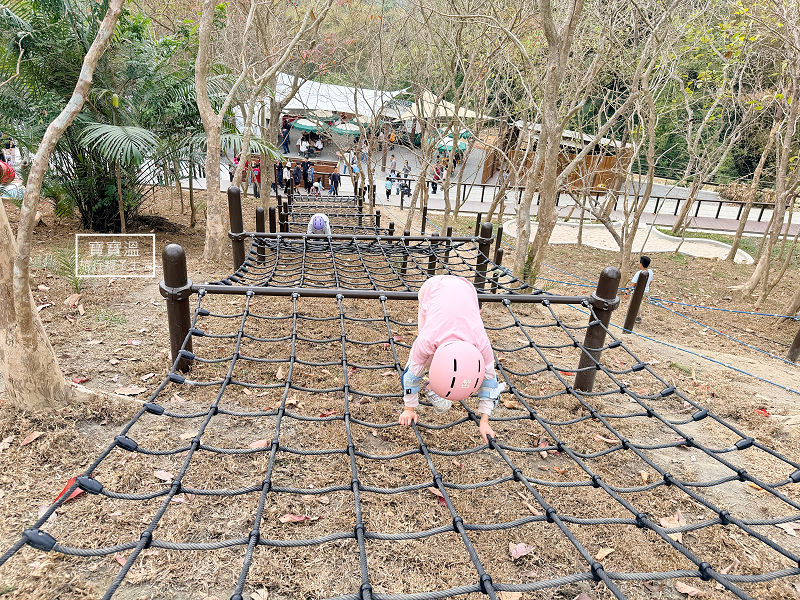 孩子只看動物沒放到電,帶到森育冒險村,有結合山坡地形的攀爬網,還有號稱高雄最長的圓筒溜滑梯。記得先戴上護具才玩喔!