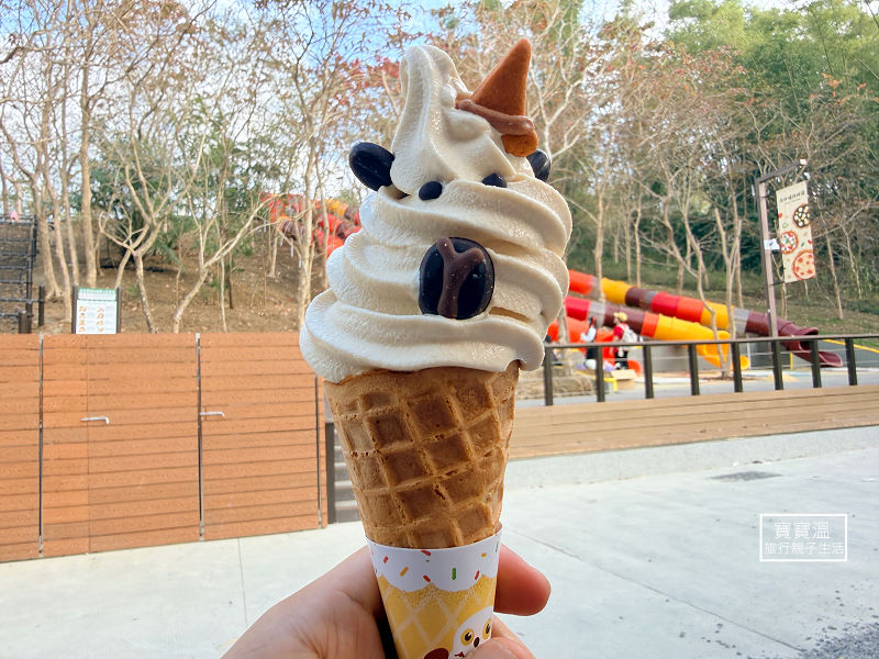 ▼霜淇淋的造型也好可愛, 我們家真的在園區玩了一整天,野森動物學校比較像是生態園區,不只是來看動物,真的是可以接觸動物,近距離觀察他們,園區內的餐廳、行動餐車也都有水準之上,入園後沒有限時間,一張門票就是一日遊的入場券