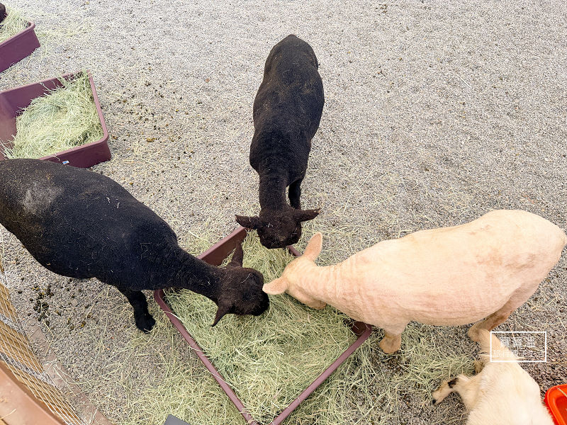 這一區綿綿牧場,可以看到韋桑羊、瓦萊黑鼻羊、南丘娃娃羊,可以餵食,也可以摸摸牠們的毛,記得要站在水泥地面上,不要踏入草皮區喔!