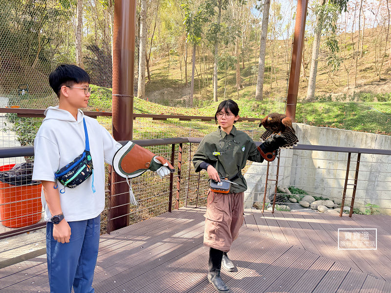 ▼進入每個園區前,工作人員都會有解說注意事項,天羽觀鳥台這一區有網子,栗翅鷹可以在其中自由飛翔,運氣好還會飛到你面前停下來喔!