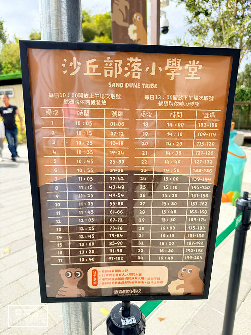寶寶溫評比野森動物學校最值得體驗的就是沙丘部落,為了體驗品質,每場有限制人數進場,建議營業前就抵達,開園後直接衝到沙丘部落排隊領號碼牌,領到後記好體驗時間,就可以去找其他動物