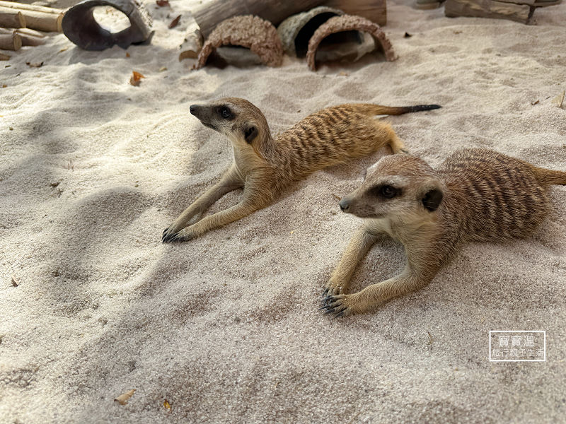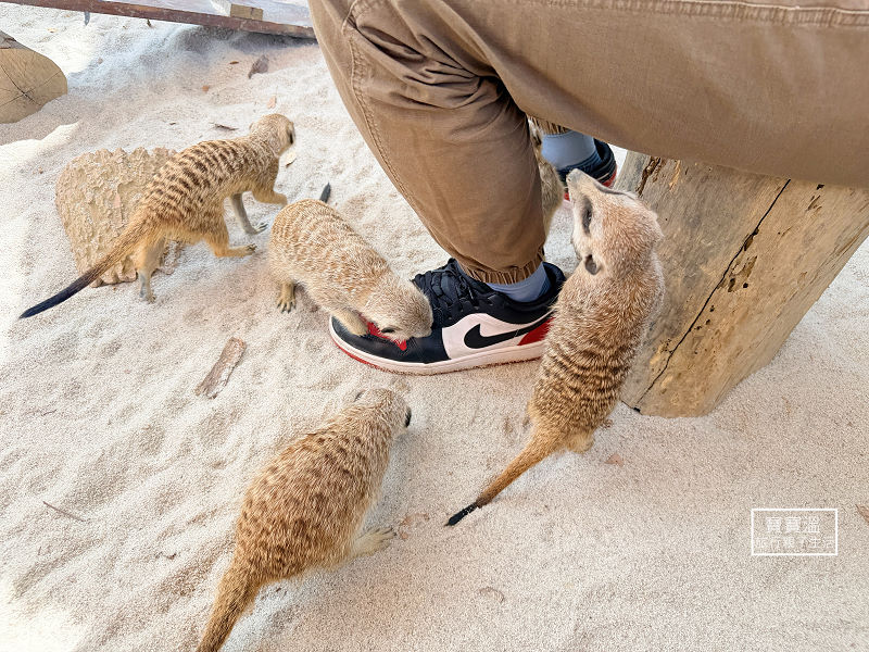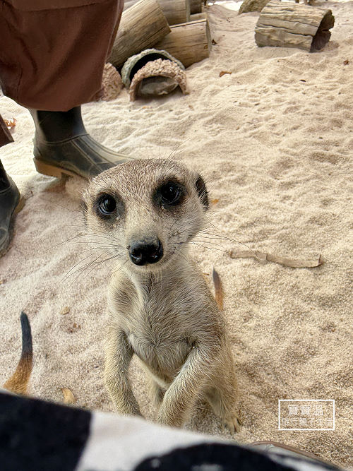 ▼沙丘部落可以近距離親近狐獴、臭鼬、黑尾土撥鼠、兔豚等動物,工作人員還會解說動物的習性,讓你跟他們互動,來狐獴這一區千萬別穿飄飄裙,會被狐獴包圍,一起玩你的裙子