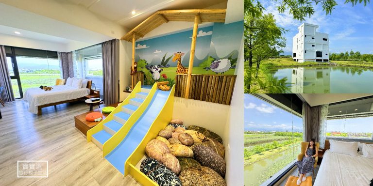 近傳統藝術中心、冬山河親水公園的「月河彎親子民宿」,結合賽車、叢林樹屋、粉紅城堡、跳跳馬、帳篷等主題,是宜蘭五結地區熱門的溜滑梯親子民宿,房間擁有絕佳的視野,可以望見落羽松林、田野風光,天氣好時還能望見龜山島,而且去知名大景點都不遠,是揪朋友一起來宜蘭玩兩天一夜過夜住宿的好選擇