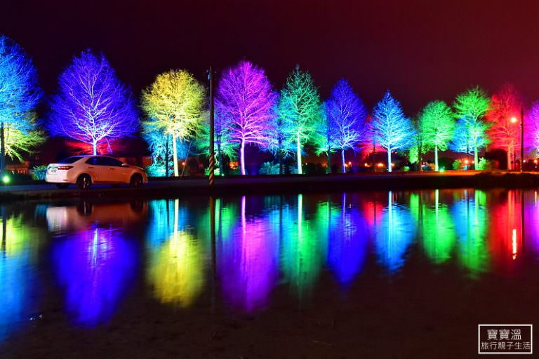 最佳拍攝時間晚上6~7點間,100盞七彩LED燈光同時亮起,營造安農溪畔夜間的浪漫氛圍 (拍攝點:三星落羽松秘境)