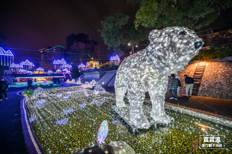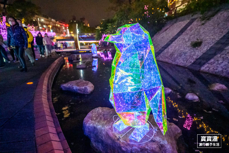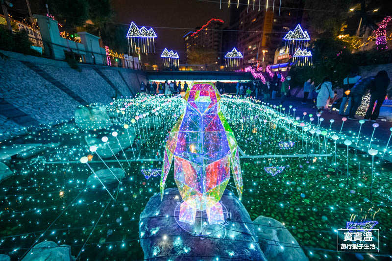 北極熊和南極企鵝踦區同框了,有著三米高的純白北極熊,搭配俏皮的七彩企鵝們,構成了夢幻又可愛的畫面,要說今年中港大排光雕展那一區最可愛,想都不用想直接來這裡找