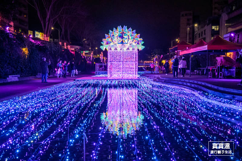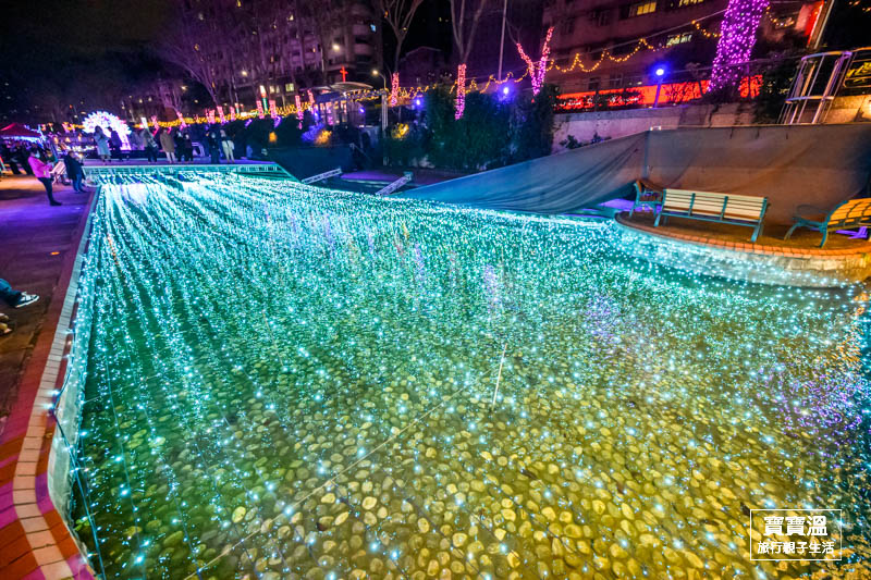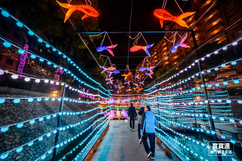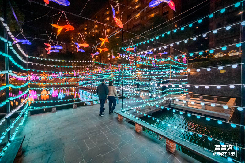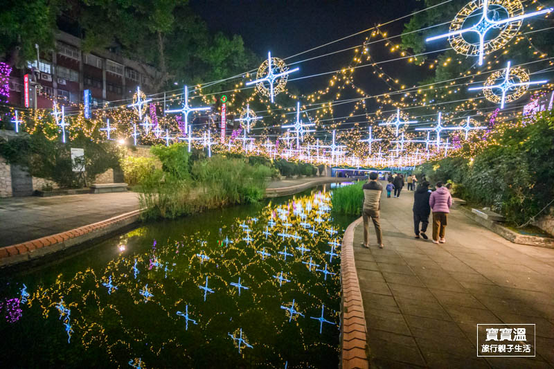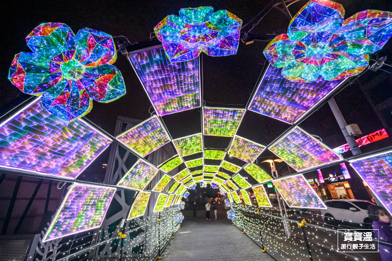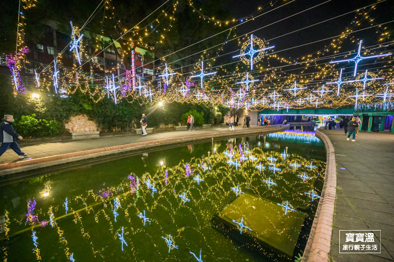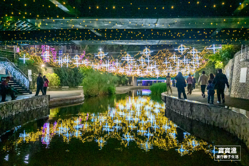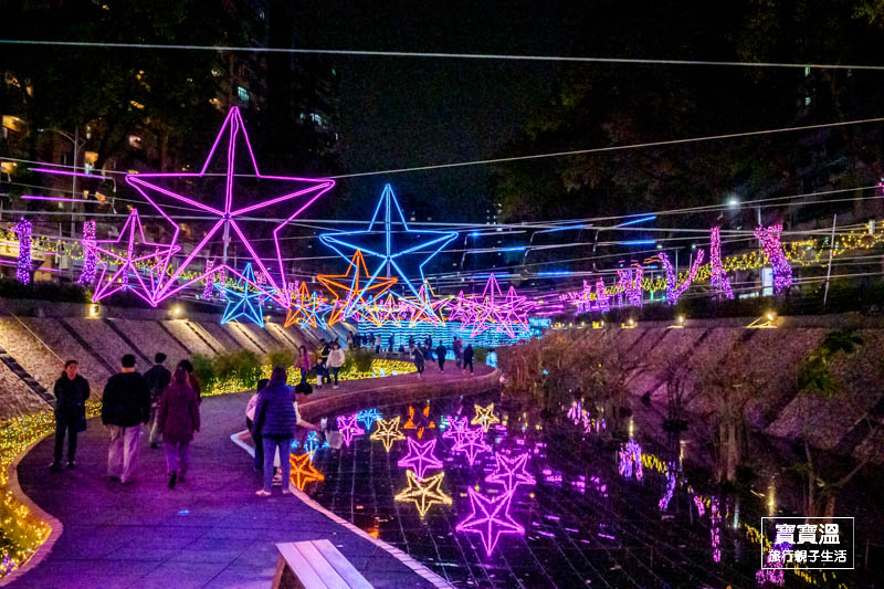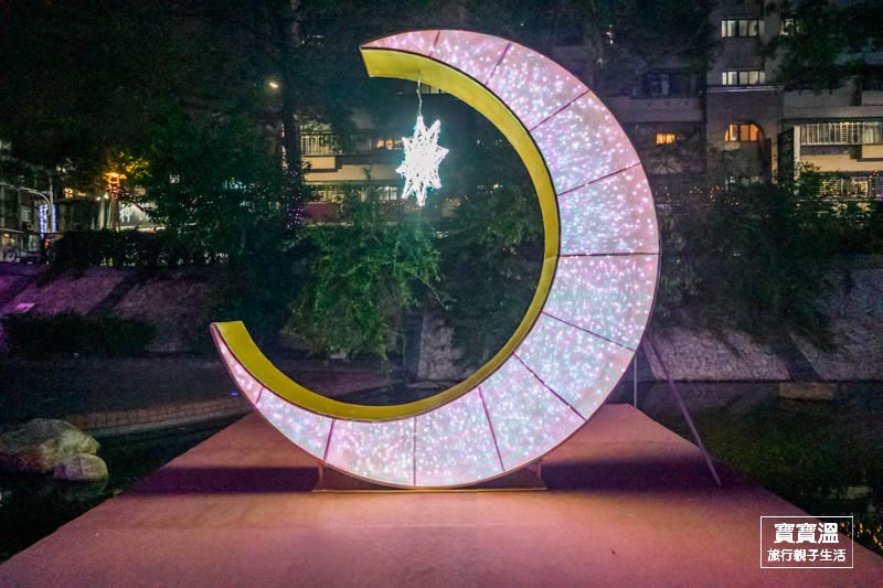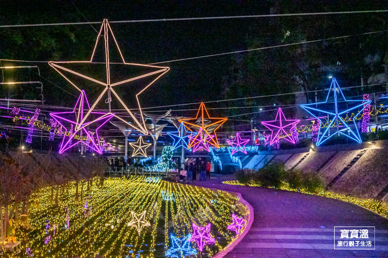 靠近彩虹廣場可以看到滿滿無敵星星掛在上空的燈區,搭配五顏六色的燈光,讓星星變得更幻夢,這一區寶寶溫也很推薦來美拍一下