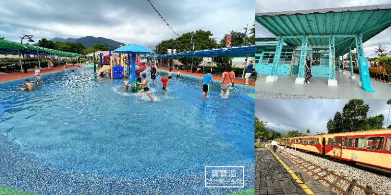 嘉義竹崎《竹崎車站》Tiffany藍全木造車站,看阿里山小火車,還有【竹崎親水公園兒童戲水區】可以玩水